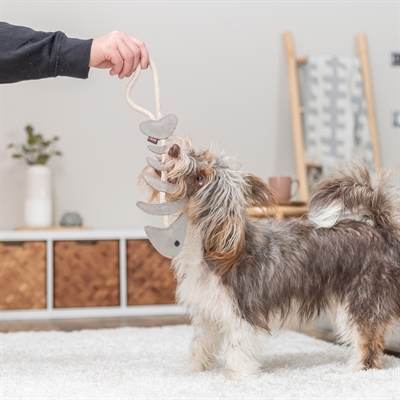 Deze visgraat van Trixie is een hondenspeeltje voor honden die graag kauwen en slepen, gemaakt van echt leer en voorzien van een stevig katoenen touw, perfect voor interactief spel. Doordat het speeltje geen geluid maakt, is het ook geschikt voor honden (en baasjes) die liever geen piepend speelgoed in huis hebben.